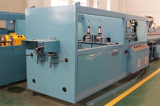 Ακατέργαστη material+additive→Mixing Unit→Auto Feeder→Conical βαθμολόγηση extruder→-Moulds→Vacuum δίδυμος-βιδών PVC που Machine→Stacker